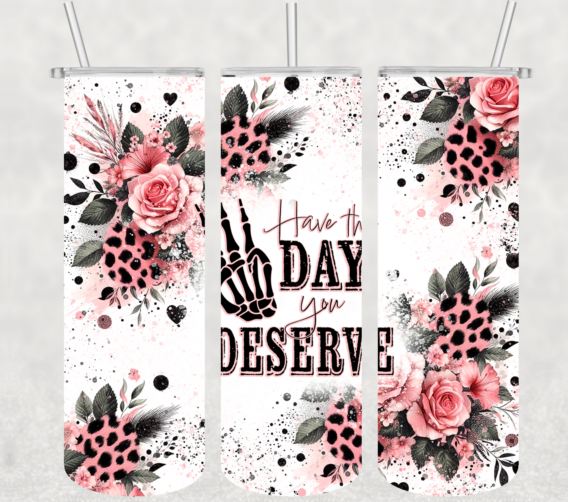 Introducing the Have The Day You Deserve 20oz Tumbler, the perfect companion for your daily adventures. Made with durable stainless steel, it will keep your drinks at the perfect temperature all day long. Stay hydrated and focused on achieving your goals with this sleek and functional tumbler.